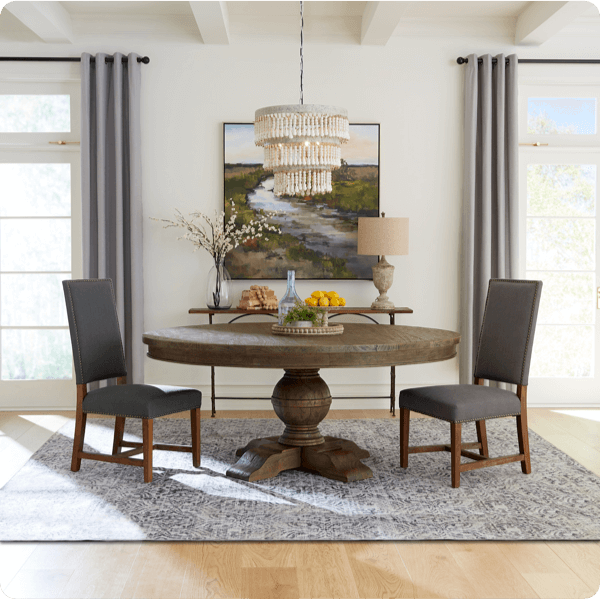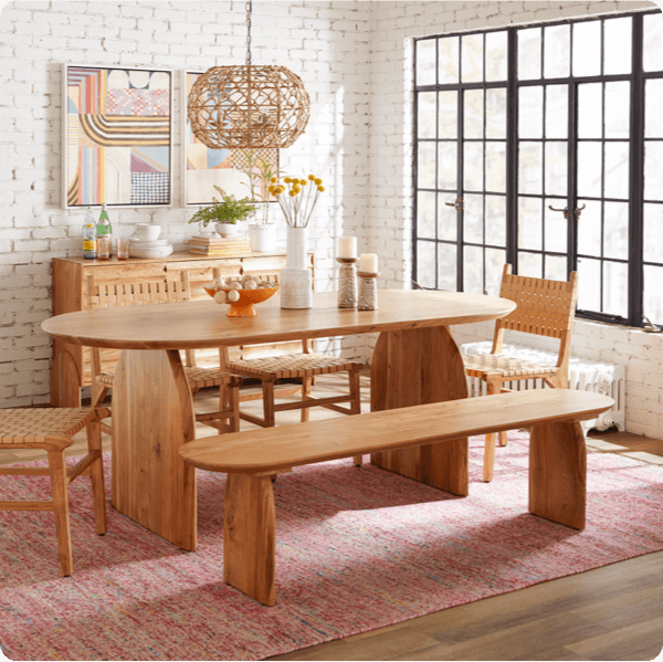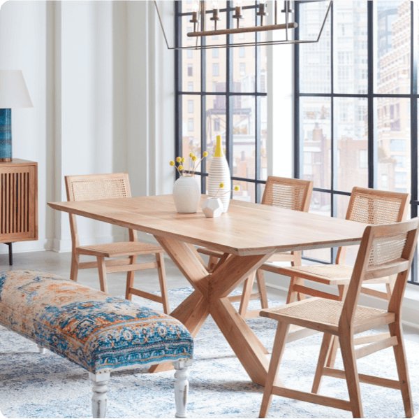 Our dining room furniture is made from high-quality, sustainable materials such as acacia, mango and reclaimed teak; metal; and eco-friendly finishes. These materials are chosen for their durability and unique aesthetic, ensuring that each piece adds character to your dining space.